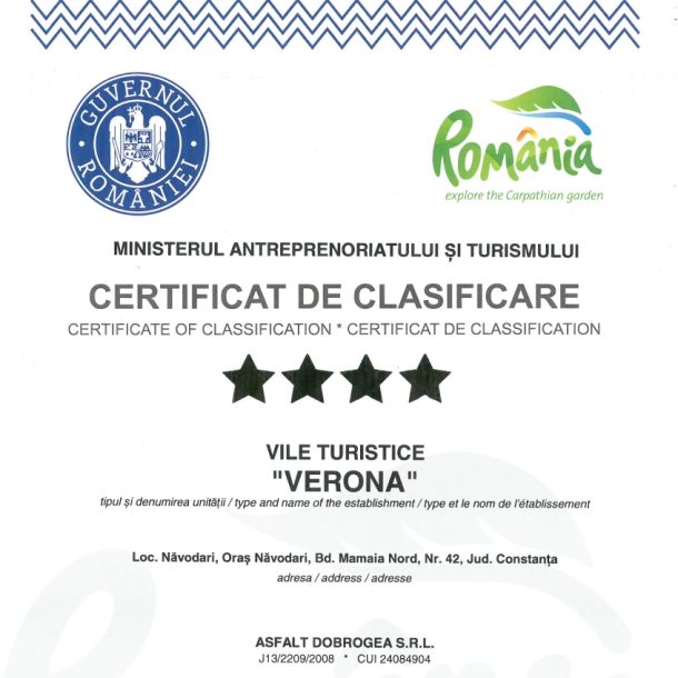 Complex Verona este situat in partea de nord a statiunii Mamaia, pe malul lacului Siutghiol,la o distanta de 200 metri de plaja. Complex Verona dispune de 8 vile si in total 48 de spatii de cazare. Dispunem deasemenea si de locuri de parcare in incinta pentru toata capacitatea de cazare.